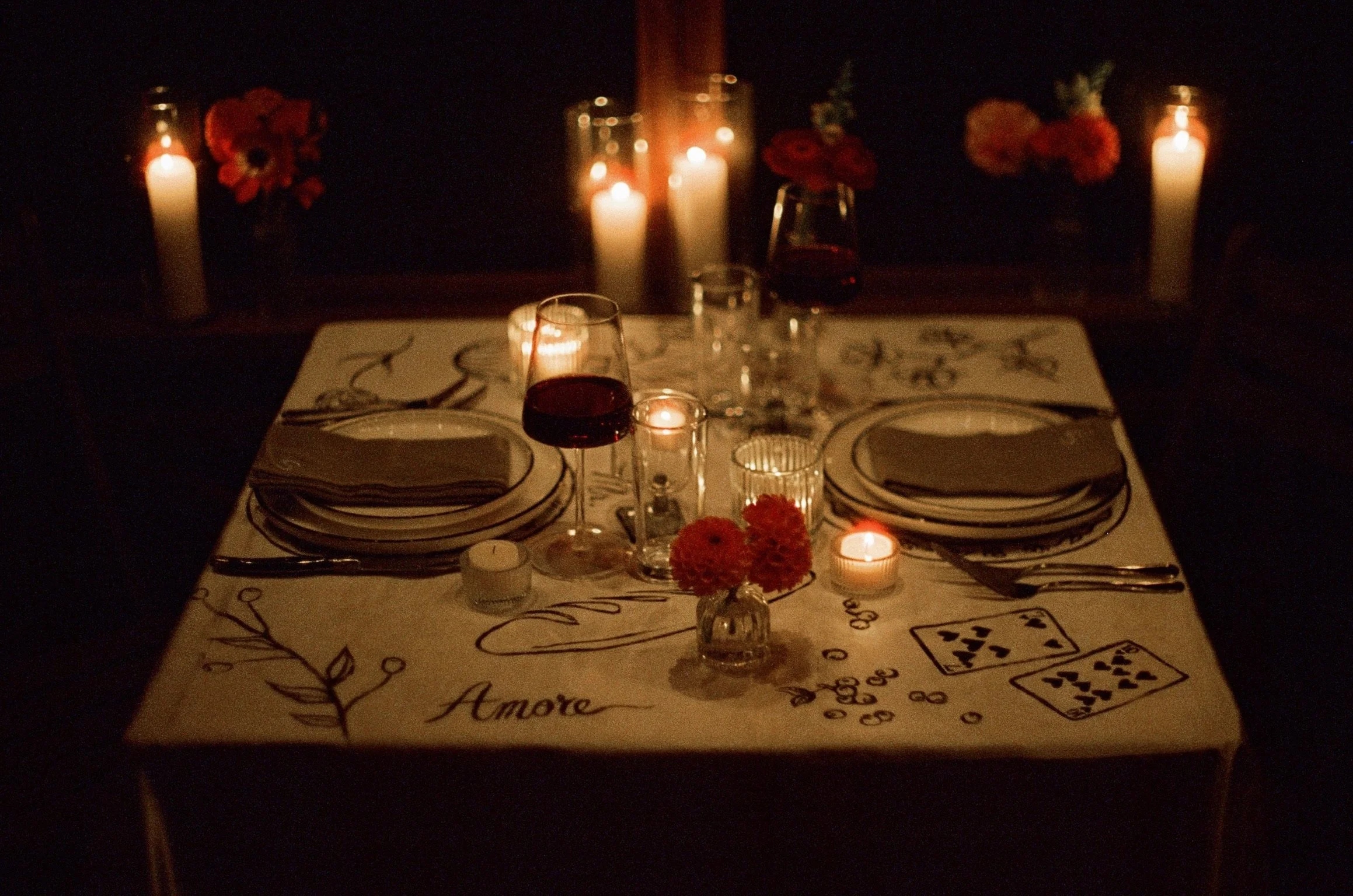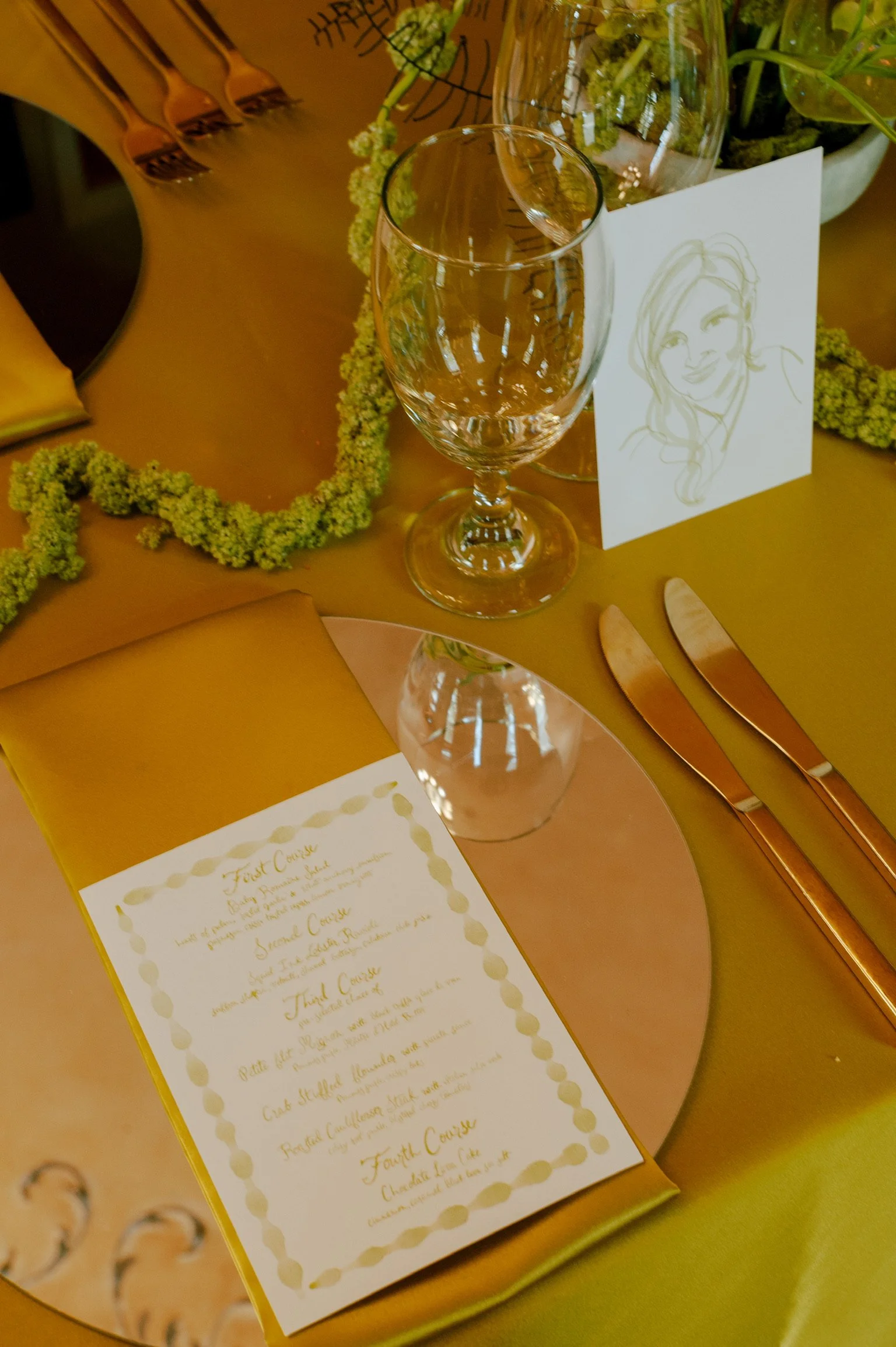 Design a one-of-a-kind table scape with custom, hand-painted details designed to elevate every place setting. From painted linens and bespoke lamps to illustrated menus and thoughtful accents, each piece is completed in advance to complement your event design and bring the table to life.