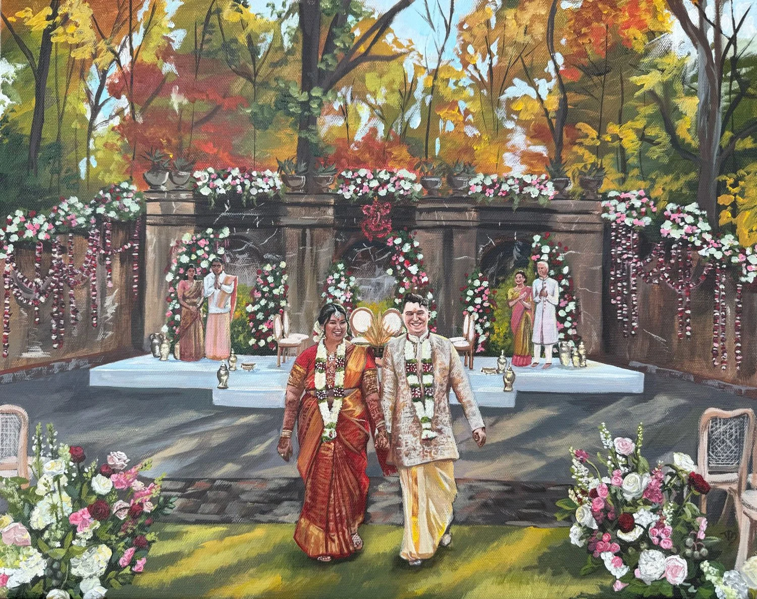 I started live event painting on NYE 2021 and completely fell in love with it. One of my favorite things to hear is “That looks just like them!” As I always strive to capture the likeness of the couples I paint.